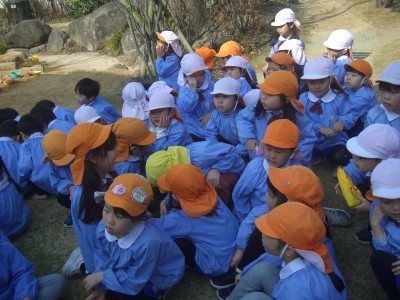 避難後は先生の話を聞いて避難するときのお約束を再確認しました!(^^)!