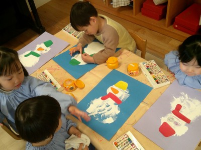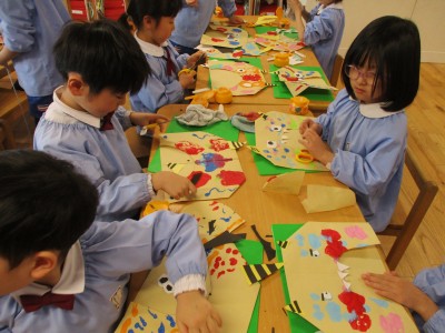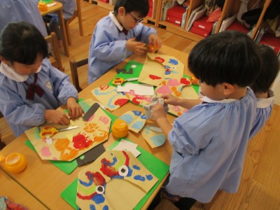4歳児クラス節分に向け、製作に取り組みました(^^)