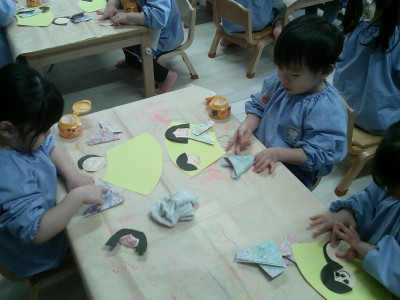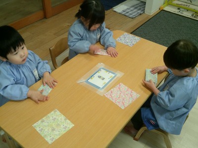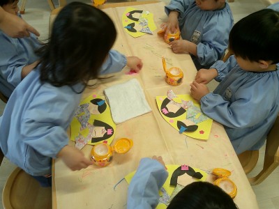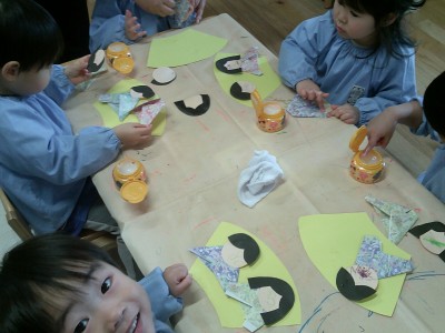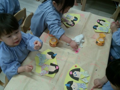2歳児クラス来月のひな祭りに向けて、製作をしました!