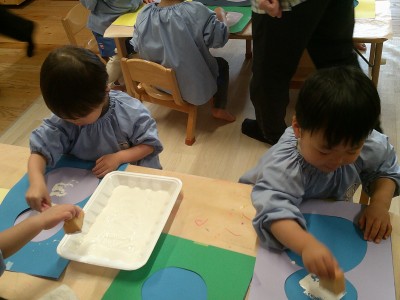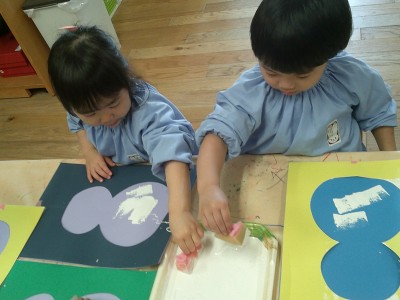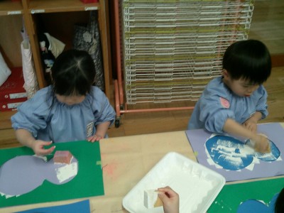 スポンジの感触を楽しみながら、何度もスタンプをしていましたよ。