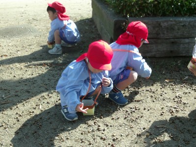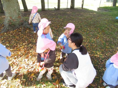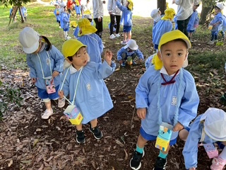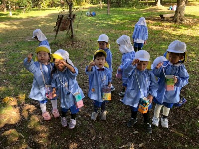 帽子を被ったどんぐりや小さく可愛らしいどんぐりと、お気に入りを見つけて夢中で集めまていました(*^-^*)