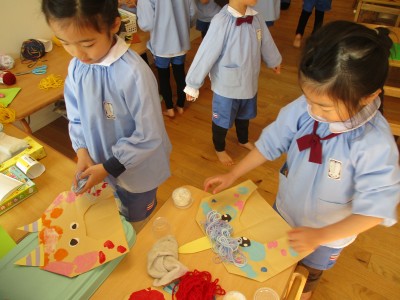 「どんなおにさんでもいいよ」というと、「かわいいおにさんかこう」「にっこりおにさんにする」などなど、子ども達の中のおにさんはとってもやさしいおにさんのようです(⌒∇⌒)