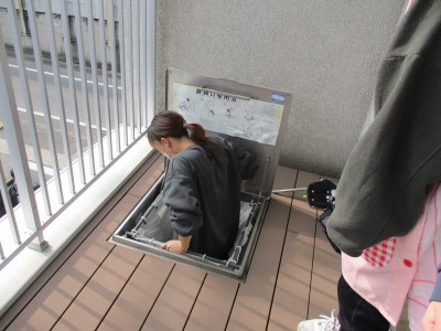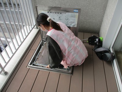 そして職員たちは非常時の避難口を使っての避難を訓練しました!
