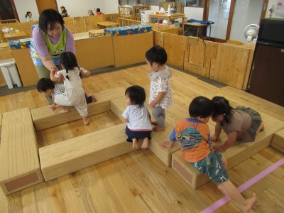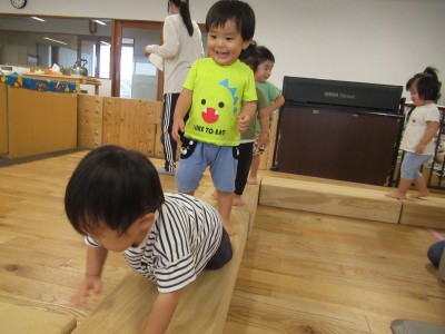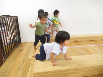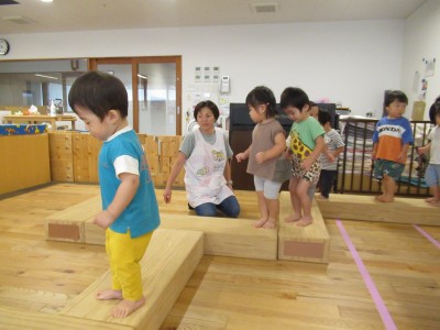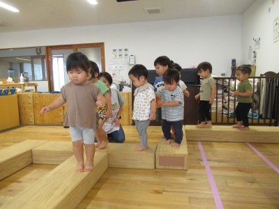 今日は、一本橋迷路を渡って遊びました!橋から落ちるとワニさんに食べられちゃうぞ!