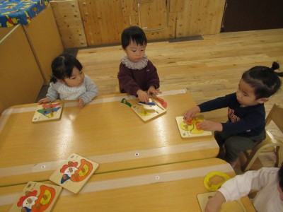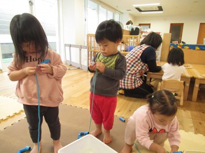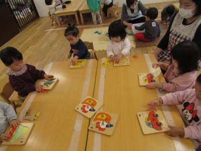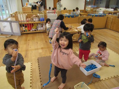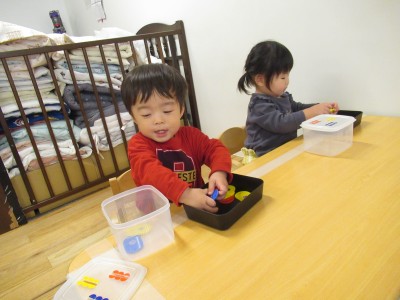 好きな遊び、見つかったかな?(^^♪今回は指先を使った遊びがほとんどで、少し難しかったかな?みんな集中しながら真剣なお顔で組み立てを頑張っていました~