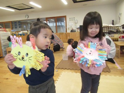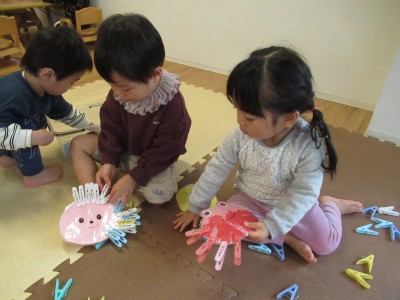 、洗濯ばさみ遊び、好きな遊びを見つけ楽しみました(^^♪