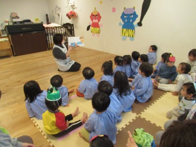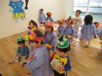 0歳児クラス 1歳児クラス2月3日節分の日、お休みのお友達が多かったので、今日は、二度目の節分がやってきました(>_<)