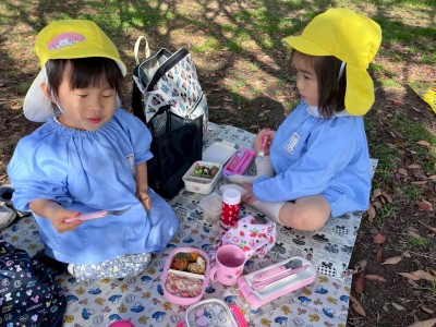 登園すると、「お弁当持ってきたよ!」「早く食べたいな!」とお話しする声でいっぱいでした!