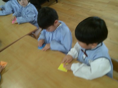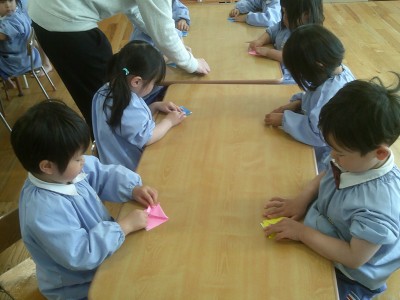 - はるひ組 折り紙でカブトを折ったよ☆