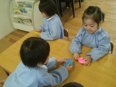 作り方の手順を聞きながら真剣な眼差しで折る姿が見られましたよ☆