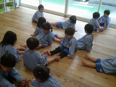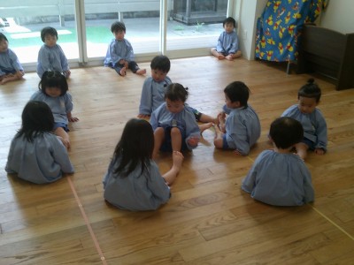 お友だちとペアになり、手やおでこ、背中などをくっつけて、とても楽しそうにしていました♪