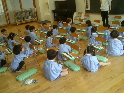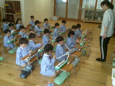 4歳児クラス鍵盤ハーモニカの活動に真剣に取り組んでいるうらら組さん♫