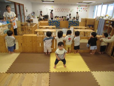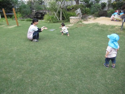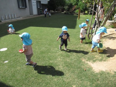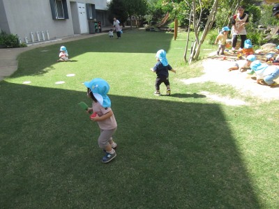 1歳児クラス今日の運動会ごっこは、園庭でかけっこ!!