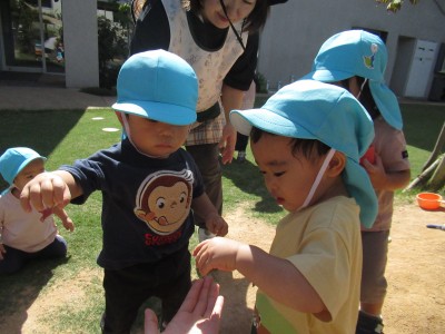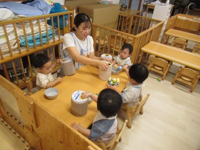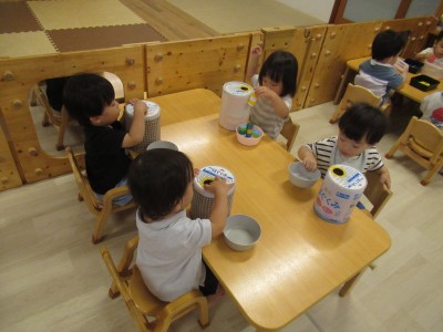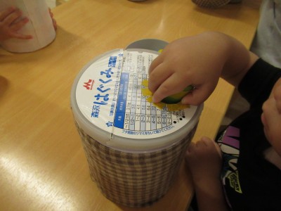 入れ終えると「(蓋を)あーけーて」と先生に伝えてくれるお友だちもいました(^^♪