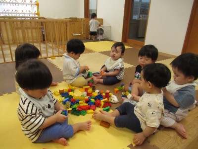 その後はあさあけ組のお友達のお歌を聴いたり、ブロックで遊んだり…