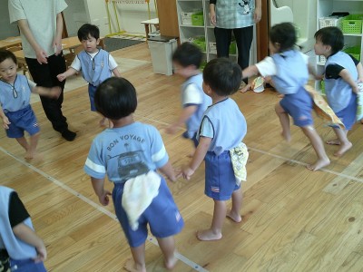 2歳児クラス初めてしっぽとりをしましたよ。