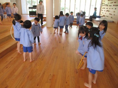 ピアノの音に合わせて走ったり、ジャンプしたり・・・♪