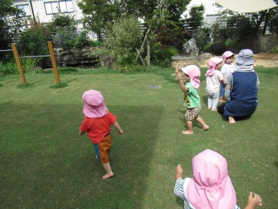 1歳児クラス園庭で遊んだよ!